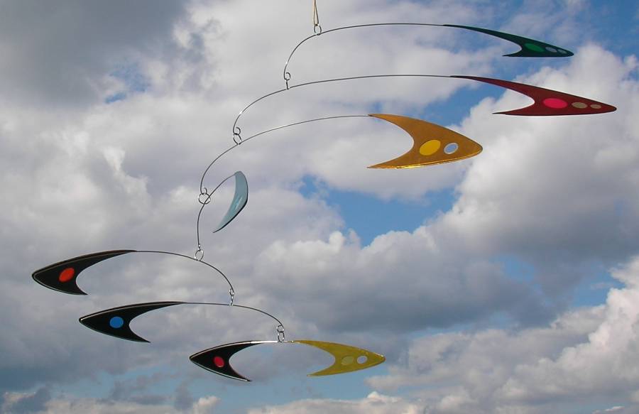 8 Spiegel aus buntem Kunststoff. Durchmesser ca. 1 Meter.